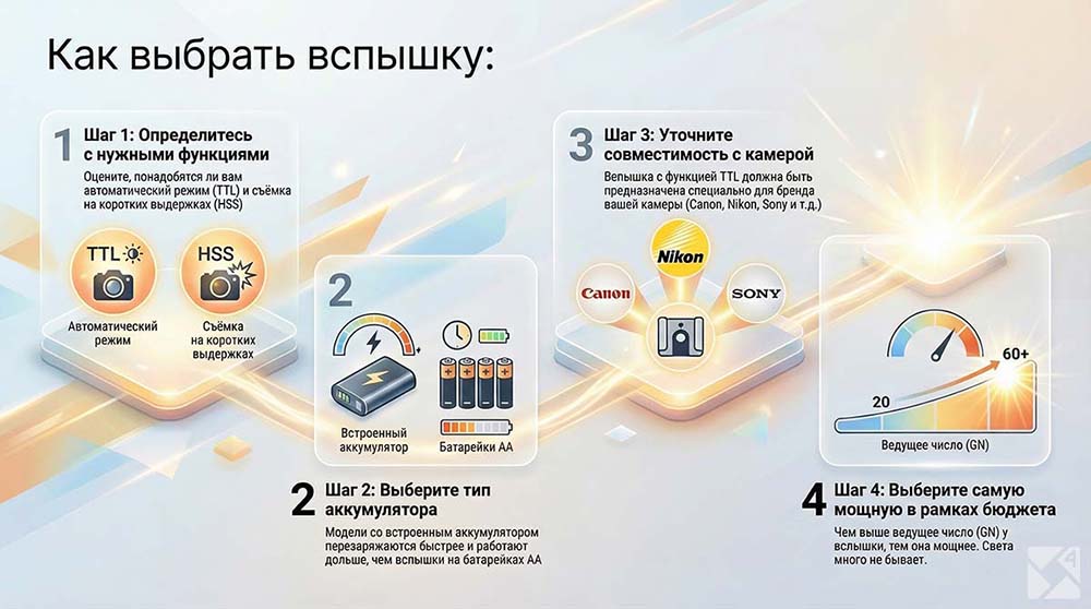 Этапы выбора вспышки